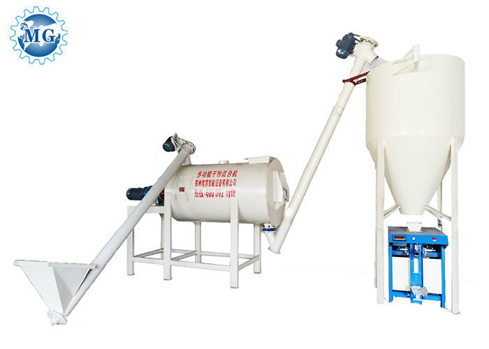 Sur la base du malaxeur de mortier sec de ruban de multi-spirale, cette chaîne de production sèche de manteau de lait écrémé de mortier ajoute un convoyeur de vis de levage, une trémie de produit fini et une machine de conditionnement secondaires de valve automatique, qui forment un ensemble complet de chaîne de production sèche simple de mortier de processus de fabrication alimentante et automatique matériel de mélange, de remplir et empaqueter.